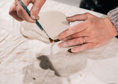 Vous ne repartirez pas avec votre création car celle-ci devra d’abord sécher doucement, pour être cuite ensuite. Vous devrez revenir la chercher à l’atelier.